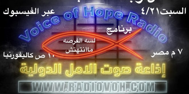 انتظرونا في حلقة جديدة من برنامج لما يعجز البشر على اذاعة صوت الامل الدولية www.radiovoh.com كل يوم جمعة الساعة٩,٣٠صباحا بتوقيت مصر و الساعة ١٠,٣٠صباحا بتوقيت العراق سلسله جديدة بعنوان ( ووجوههم لم تخجل ) و للتواصل معنا و طلبات الصلاة على الايميل التالى [email protected] و الاشتراك فى البرنامج الرجاء الاتصال …
