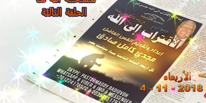 برنامج الأقـتــراب إلى الله يأتيكم عبر إذاعة صوت الأمل الدولية وصفحة الفيس، الـشــروط الإلـهـيـــــــة للـحـصــول على الـمـسـحــــة في مقدمتنا لموضوع سلسلة “مـسـحــة الله لك” نوهنا عن المجالات المتعددة التي تحتم حصولنا على المسحة وفي حلقتنا الثانية سيكون حديثنا عن “الـشـروط الإلهية اللازمــة للـحـصــول على الـمـسـحــــــة” سوف نتتبع الترتيب الإلهي فى …