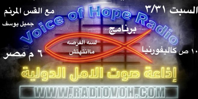 أكمل القراءة »اذاعة صوت الامل الدولية 24 ساعة 7 ايام فى الاسبوع شارك الاخرين برابط الاذاعة لكى تكون سبب بركة وعزاء للاخرين www.radiovoh.com https://www.facebook.com/LoveVoiceofhoperadio/ Viber + WhatsApp : 0035795179710