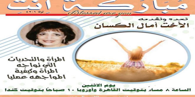 اهلا بكم فى برنامج ( مباركة انتى ) تقدمة لكم الاخت امال – الساعة 8 مساء كل يوم اتنين – يتحدث البرنامج عن الصعاب والتحديات التى تواجه المرأة وكيفية التعامل معها على اذاعة صوت الامل الدولية – وصفحة الفيس بوك www.radiovoh.com https://www.facebook.com/LoveVoiceofhoperadio/ مع تحيات اذاعة صوت الامل الدولية
