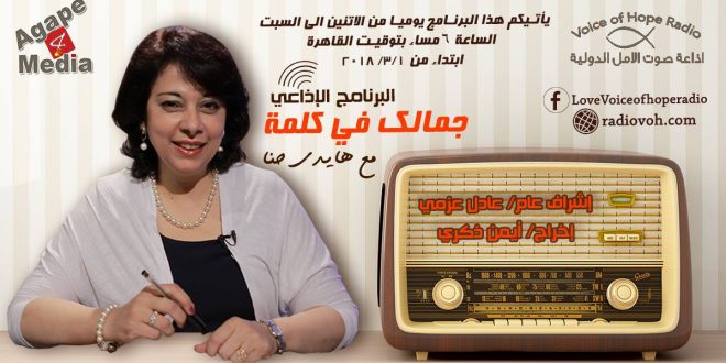 حصريا الان على اذاعة صوت الامل الدولية – وبرنامج جمالك فى كلمة – يقدمة فريق هيئة المحبة