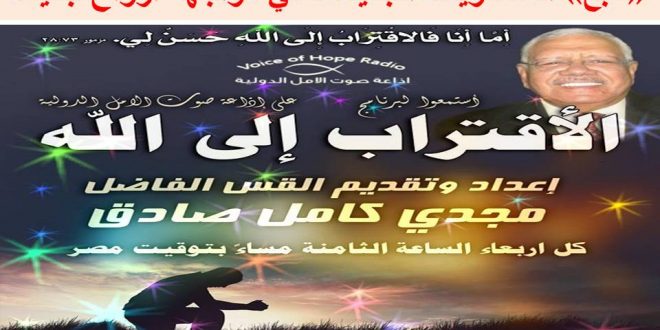 بـرنــامــــج الأقـتــراب إلى الله سـلـسـلــة الـحــريــــة في الـمـســـــــــــيـح كـيــف أواجــه وأنـتـصــــر على أرواح الإعـاقـــة (تابع) مـسـتــويــات جـديــدة تعني أرواح جـديــدة الحلقة الـعـشــرون على إذاعة صــوت الأمــل الــدولـيــــة الأربعاء 27/3/ 2019 في الثامنة م توقيت مصر أرحب بالتعليقات والأستفسارات وطلبات الصلاة www.radiovoh.com البرنامج من أعداد وتقديم قـس/ مجـدي كـامـل صادق