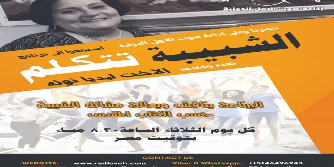 هل حقيقة توجد مشاكل بين الاهل والابناء؟ ماهي ؟ وما رأي الشباب بموضوع علاقتهم بالاهل؟ لسماع الجواب على هذه الاسئلة واي سؤال اخر عندكم استمعوا الى برنامج : الشباب يتكلم برنامج بيناقش وبيعالج مشاكل الشباب حسب الكتاب المقدس تقدمه لنا الاخت ليديا نونه يوم الثلاثاء 22 يناير 2019 في تمام …