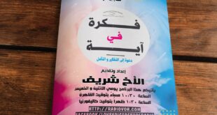 أكمل القراءة »برنامج ” فكرة فى آية ” يقدمه لنا الاخ شريف على إذاعة صوت الأمل الدولية كل يوم إثنين وخميس الساعة 10:30 مساء بتوقيت مصر