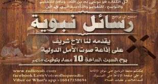 فى الارتفاع : الحلقة الرابعة والعشرون – الجروح – الجزء الثالث استمع الى برنامج “رسائل نبوية” يقدمه لنا الاخ شريف على إذاعة صوت الأمل الدولية الساعة 10 مساء بتوقيت مصر يمكنكم متابعة البرنامج على موقع الإذاعة www.radiovoh.com وعلى صفحة الاذاعة : https://www.facebook.com/LoveVoiceofhoperadio/ وعلى جروب الاذاعة : https://www.facebook.com/groups/125431344541707/ للمداخلات باسئلتكم و …